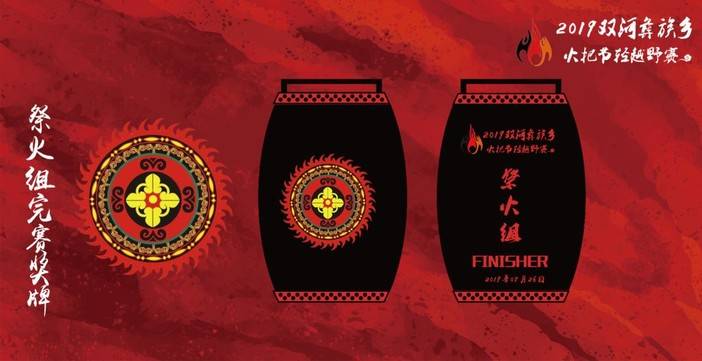 本次赛事的完赛奖牌灵感来自于秧佬鼓,奖牌挂带,源于彝族的传统民族编织,两者美妙的融合,希望借此让更多的人了解这项传统的民族文化。