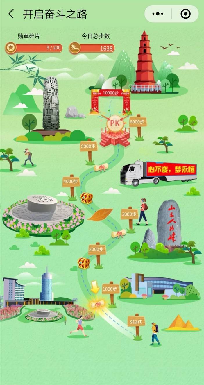 开启“红塔乐走”小程序,每天6000步,开启PK擂台,参与PK赛,与线上选手同场竞技,答题就能赢积分,参与“PK天梯排位”,谁是最强大脑?在四个阶段结束后,集齐四枚阶段勋章成功合成一枚“巅峰勋章”,且在“PK天梯积分榜”中排名前100的选手,将有资格兑换终极大奖!