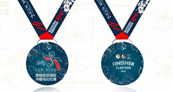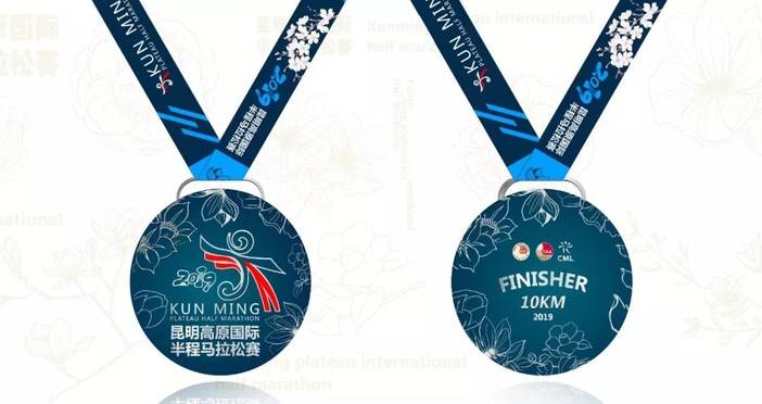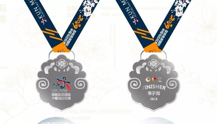 本次赛事半马及十公里组奖牌以昆明非物质文化遗产传统手工艺“乌铜走银”为灵感,结合昆明花卉,充分展现“春城花都”美名的同时, 承载对文化的传承。而亲子跑的完赛奖牌,设计灵感源自于百岁锁,以此祝福参加亲子跑的小朋友们健康成长。