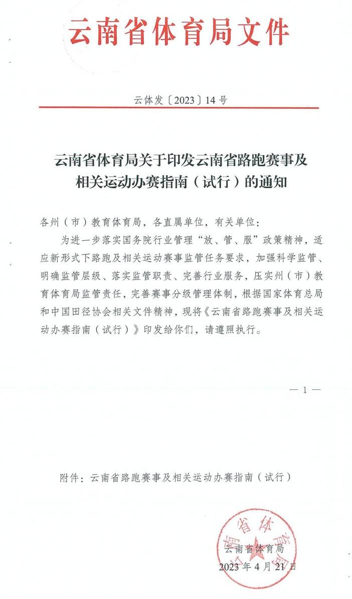 云南省体育局关于印发《云南省路跑赛事及相关运动办赛指南》的通知